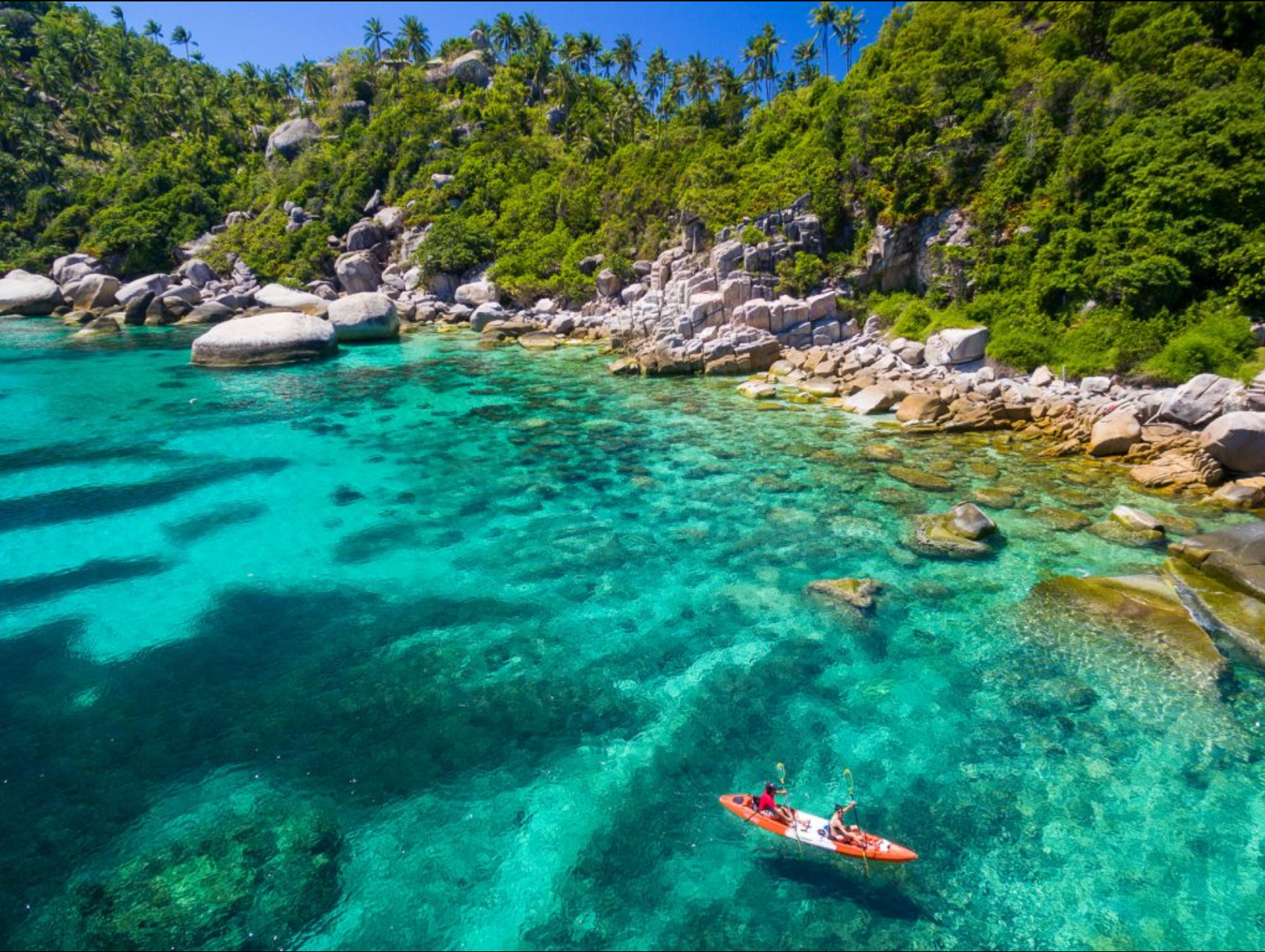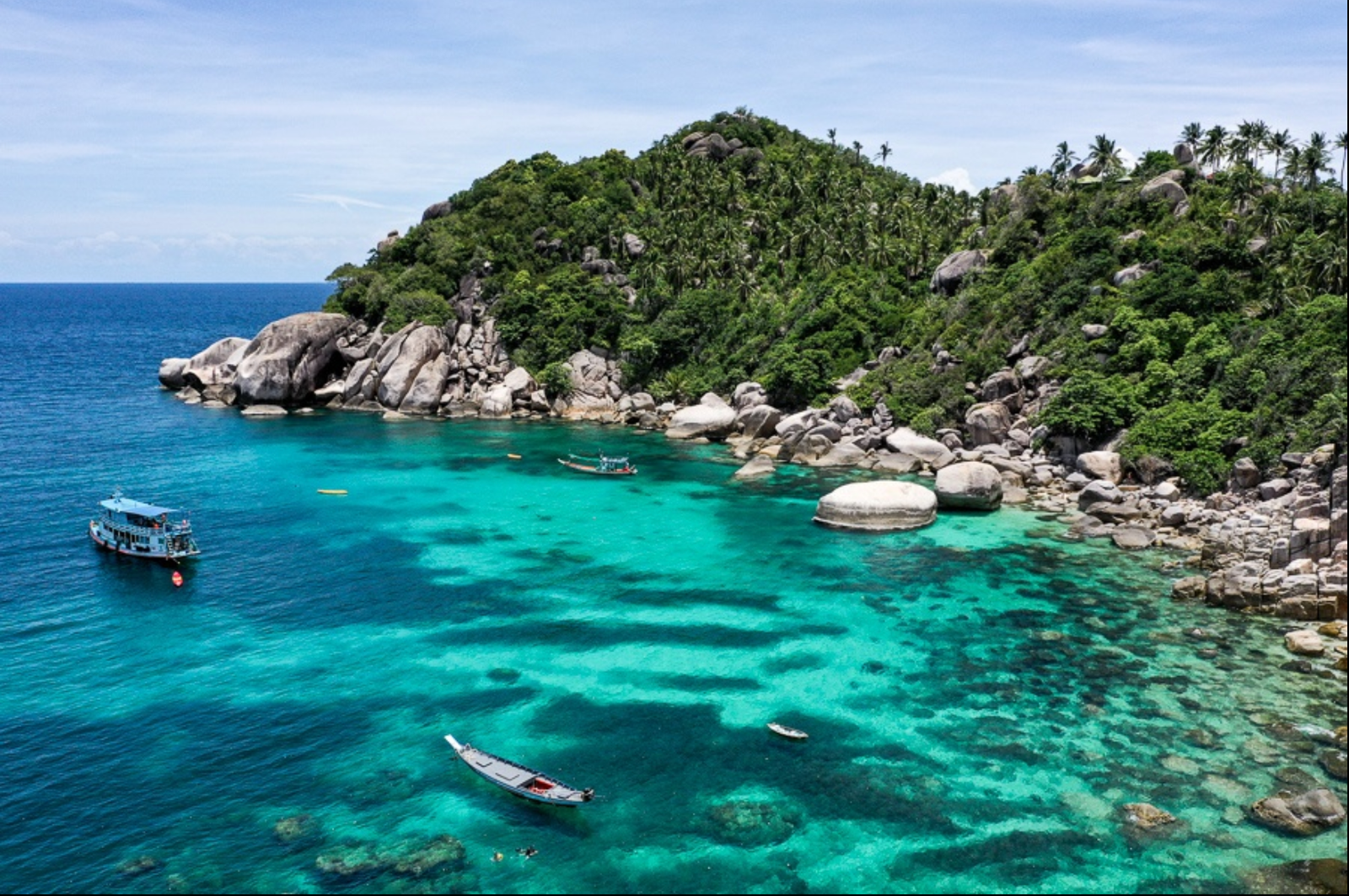 - Varias paradas en los lugares más bonitos de Koh Tao, incluida una sesión de snorkel en la famosa isla de Nangyuan y su banco de arena blanca.