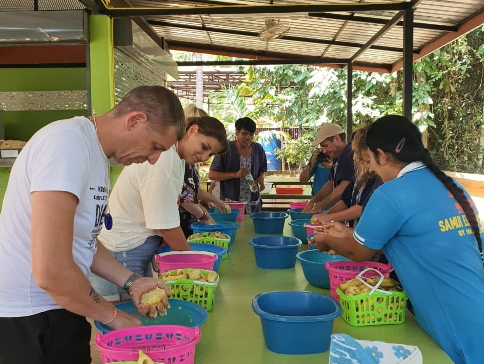 • Preparación por vosotros mismos de la comida para los elefantes.