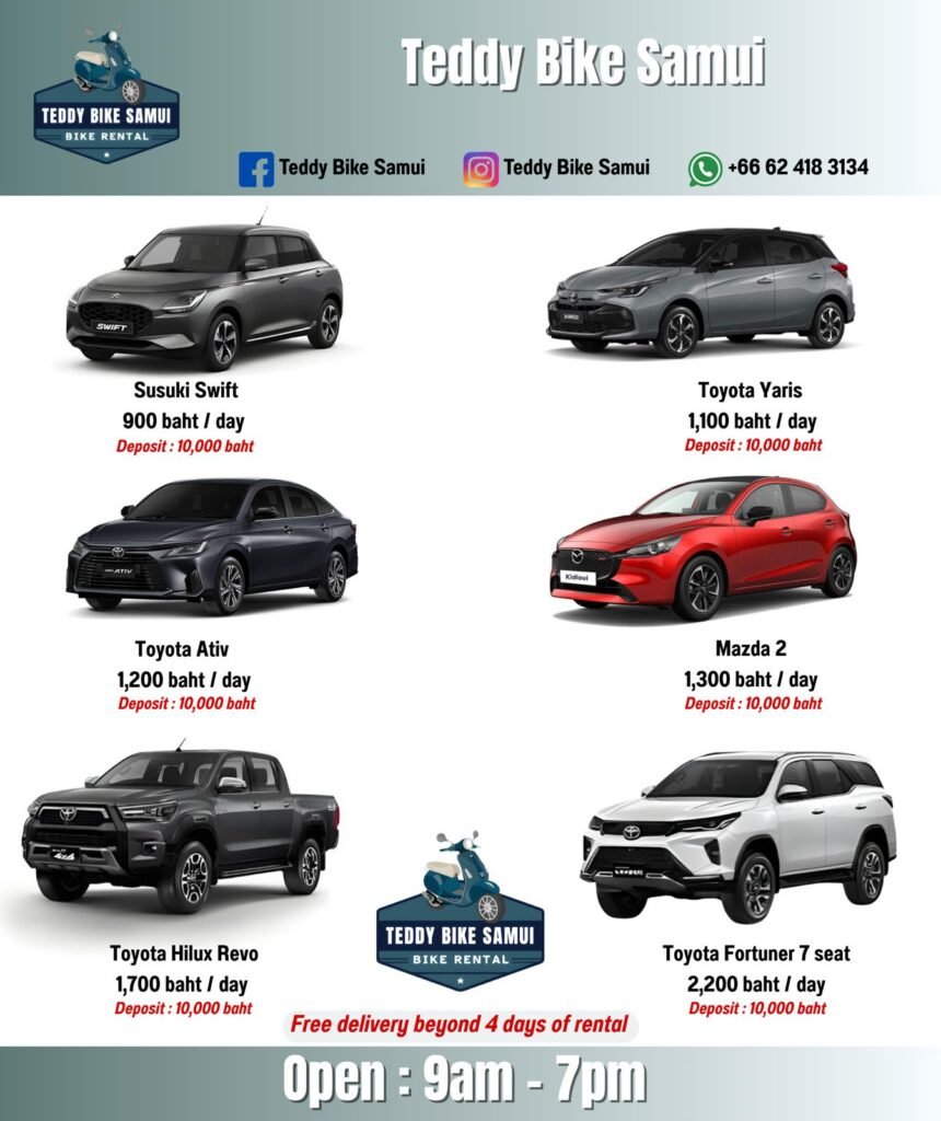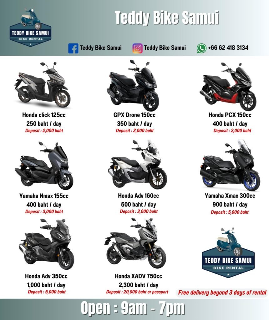 📞 Contacto directo – Teddy Bike Samui WhatsApp : +66 62 418 3134 Facebook : Teddy Bike Samui Instagram : Teddy Bike Samui